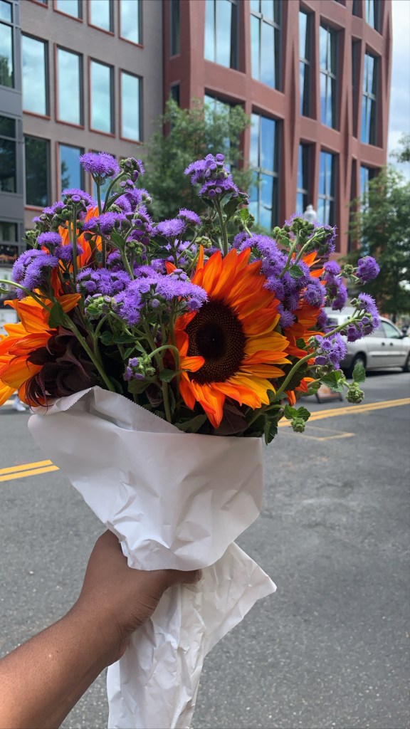 Date Rating: ππΈπΊπ·π» out of 5. What a weekend. I’ve been feeling blue so I decided to seriously get out of the house with a friend. I took a bike ride to Capitol Hill and got a candied salmon bagel from Call Your Mother. The bike ride was a little uphill and your girl was winded haha I just sat in the grass and took in the nice weather! Then I walked over to Eastern Market and bought this gorgeous bouquet of flowers after I saw another Black woman got them! Blue Iris Flowers is Black-owned and they have such a stunning selection! Every time I look at my coffee table, I instantly smile. I’m going to make it a bi-monthly little trip! I am a huge advocate in doing things to spoil yourself. I got some comments when I posted to my personal IG story that all centered around “You don’t need a man to buy you flowers”. And it’s funny because I didn’t even make a mention of a guy at all haha besides, can you imagine a straight man putting together an arrangement like that?!