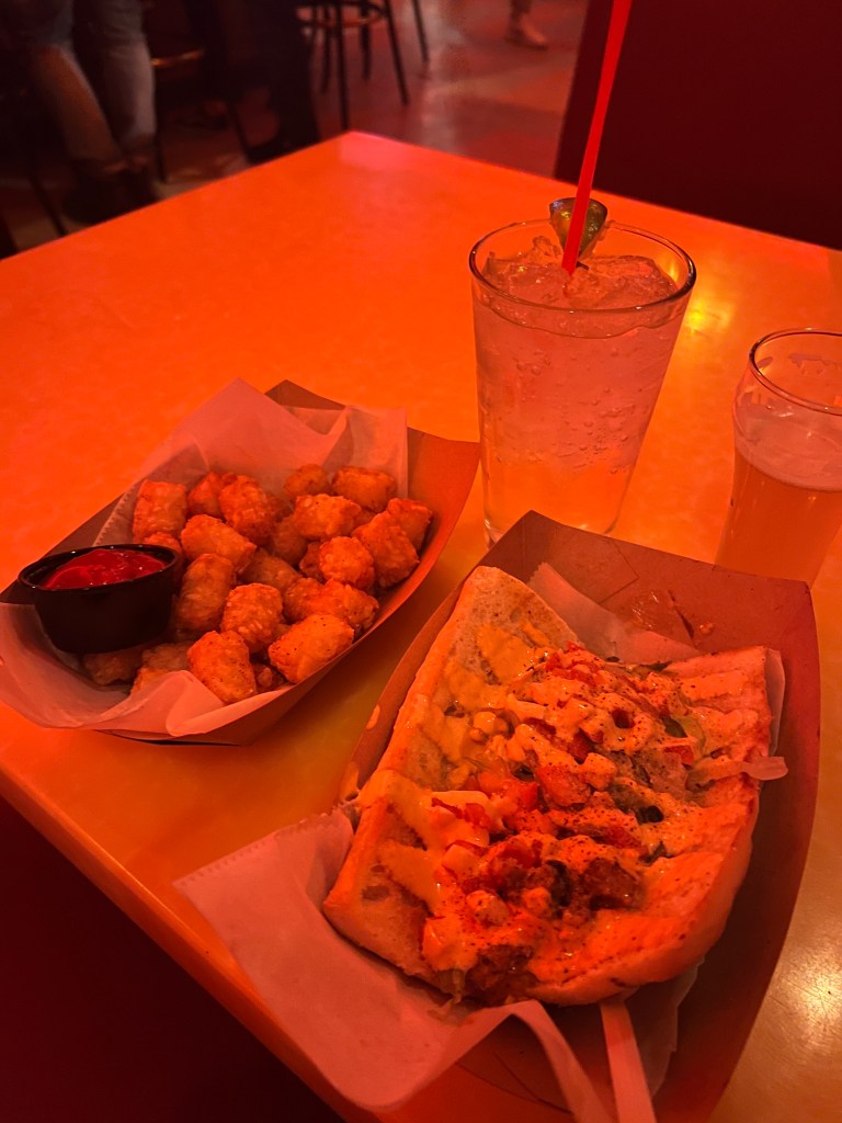 “No, I’ll buy you one because you came out. You can pick mine though, help me expand my palate and all.” He grins. Oh, he has no idea. I pick a drink he really likes and we head back over to our group. We just end up in a little bubble talking. He says he needs some inspiration and needs to get out of the house. And well, we know I never sit still. There’s no one more perfect for the job than me. Time is just floating on by until I get fiercely hungry. He says he knows where I can get some dinner this late.
