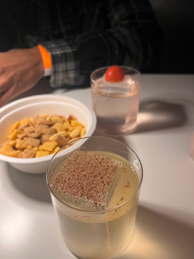 “What are you drinking? I’ll grab it.” I say. (Look at me, buying the first drinks, who am I?)